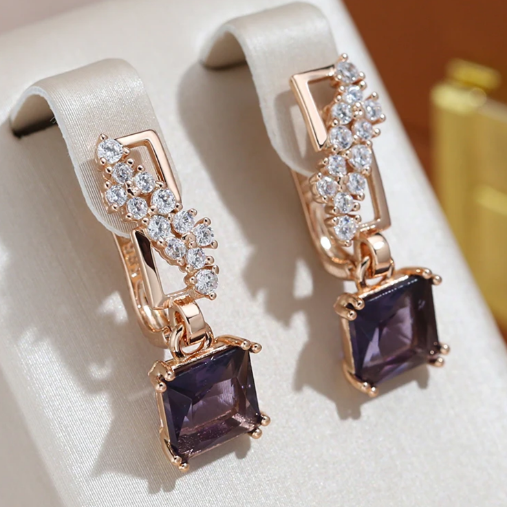 Ohrringe mit eleganten vergoldeten dunklen Kristallen